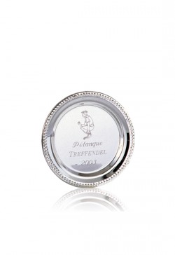 ASSIETTE - Taille unique : Diam 10 cm - Matière de l'assiette : Métal - Finition : Tout argent - Personnalisation après étape 1 : Choisir votre activité ou importer votre propre logo (suppl. 50 ) - Gravure laser gratuite : logo et texte jusqu'à 40 caractères puis 0.05 le caractère suppl.)